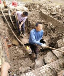 五月一日凌晨三點多鐘,宜城市振興大道聯(lián)通公司門前直徑400mm的鑄鐵管突然爆管。正值五一小長假,為了能在最短的時間內(nèi)恢復供水,公司領導接到市民報警后,及時組織搶修人員趕赴事發(fā)地點,根據(jù)現(xiàn)場情況,迅速制定搶修方案,組織搶修人員緊急開挖,并同時制作搶修配件。當時宜城正天降大雨,搶修人員的衣服很快就濕透了,雨水與泥土形成的泥漿濺滿了他們?nèi)?,路過的市民紛紛投來了敬佩的目光。雖然一身雨一身泥,大家全然不顧,心中只有一個念頭:盡快把管道維修好保證正常供水,讓市民過一個快樂的五一勞動節(jié)。大家齊心協(xié)力,克服一切困難,連續(xù)作戰(zhàn),最終比預計的搶修時間提前了五個小時恢復正常供水。