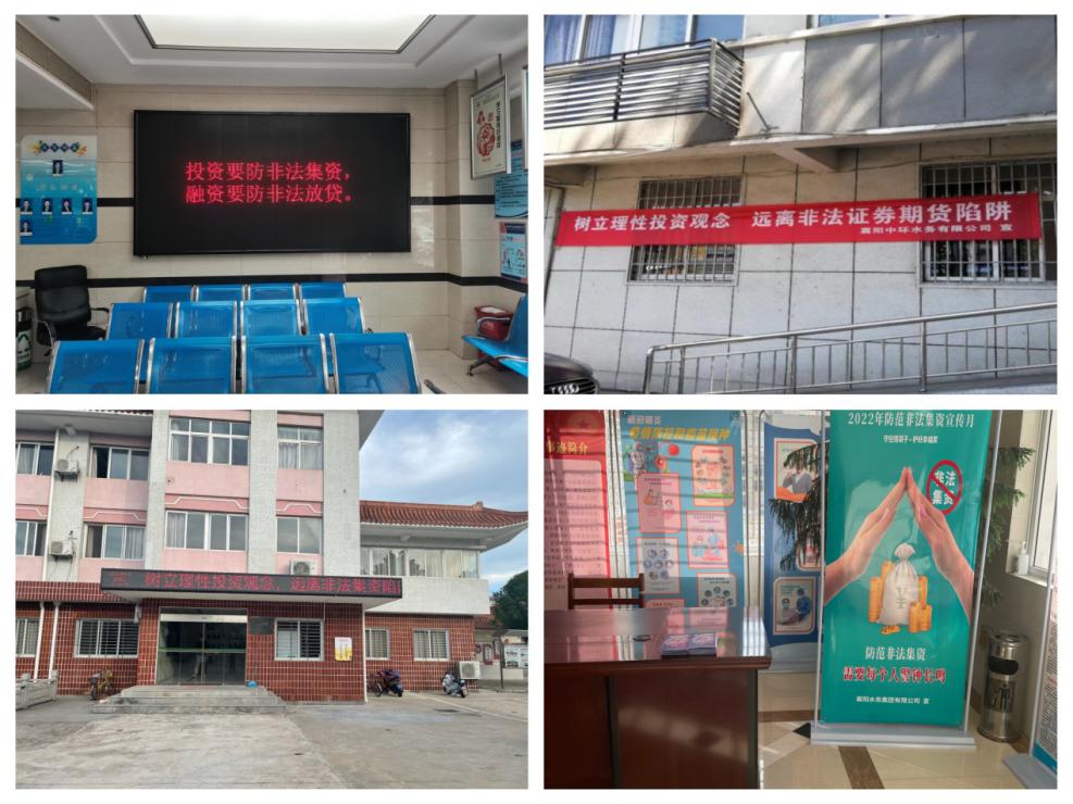 在宣傳活動期間,集團本部以及集團參股公司、子公司開展了形式多樣的宣傳活動。編制了宣傳材料,制作宣傳教育展板,對非法集資特征、主要表現(xiàn)形式、常用手段及識別方法等進(jìn)行宣傳。襄陽中環(huán)公司、宜城天河公司利用營業(yè)網(wǎng)點多、涉眾面廣的優(yōu)勢,在營業(yè)所、客服服務(wù)中心大廳和辦公場所等10余處LED顯示屏滾動播放宣傳標(biāo)語,警示社會公眾保護自身利益,遠(yuǎn)離非法集資。并且,組織公司職工關(guān)注中國銀行保險報微信公眾號、參加防范非法集資知識答題賽。