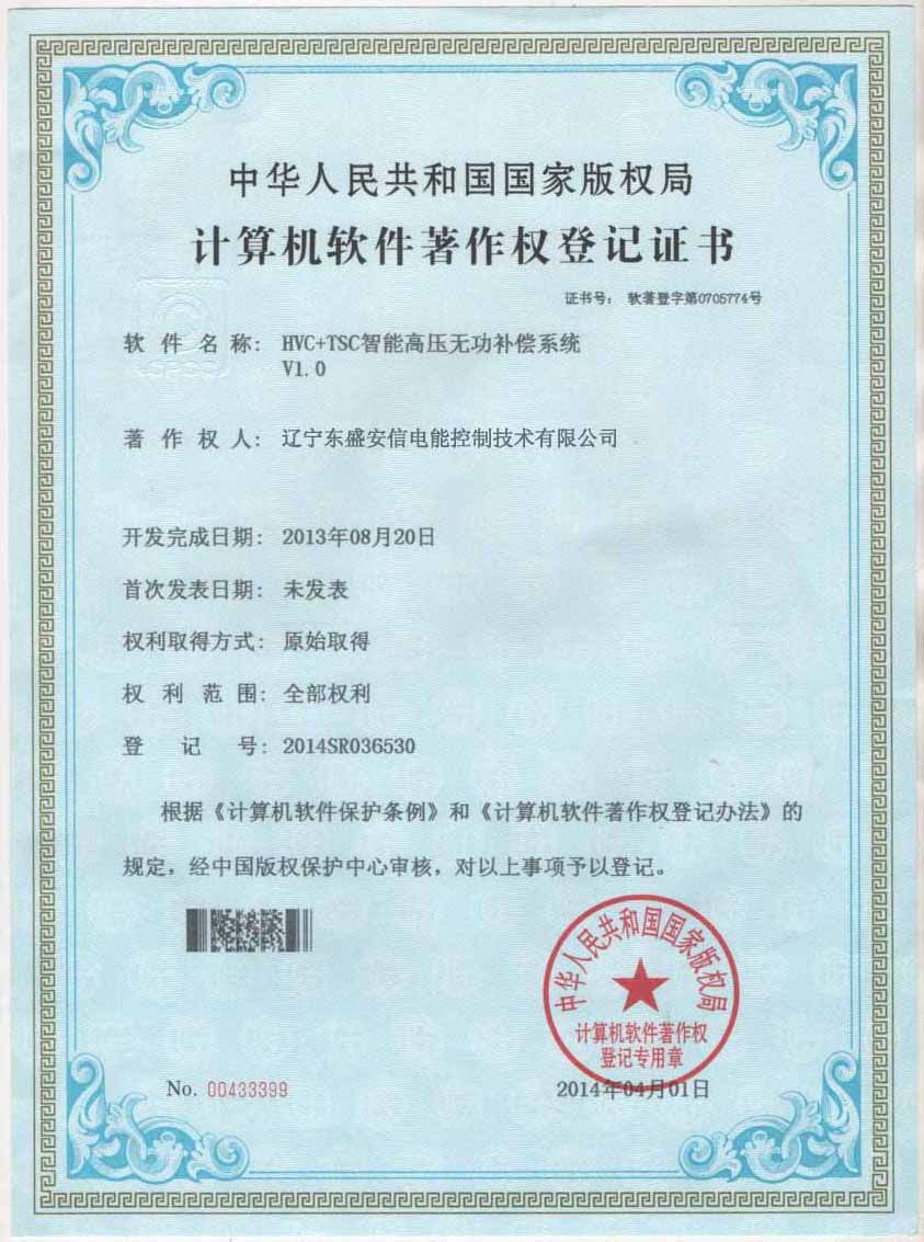 1個(gè)著作權(quán)是:HVC+TSC只能高壓無(wú)功補(bǔ)償系統(tǒng)V1.0